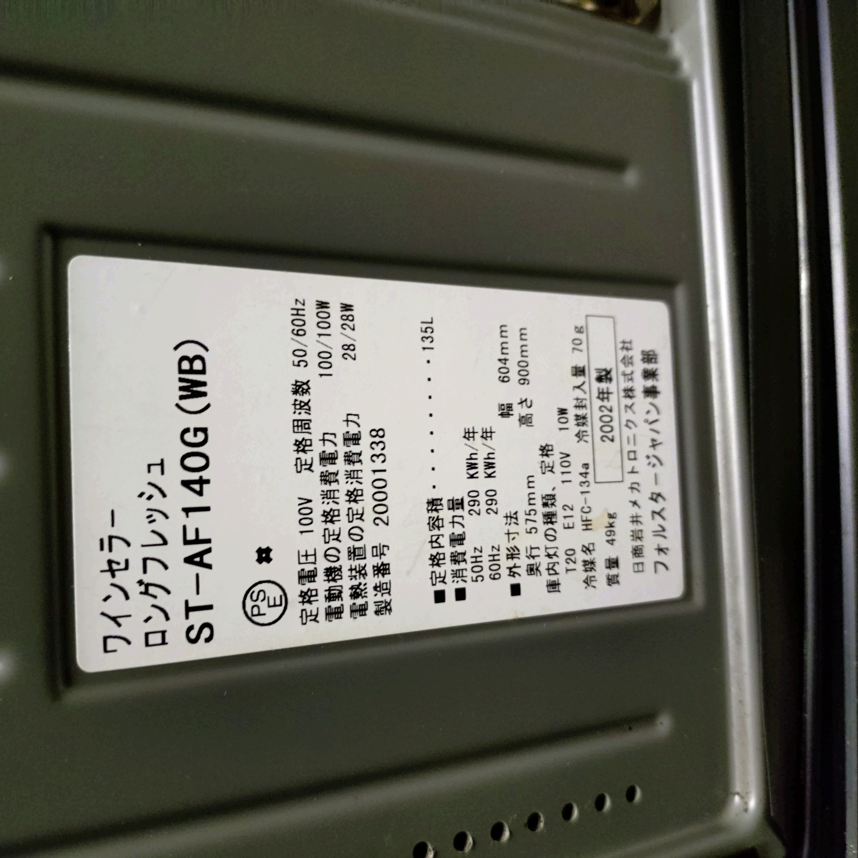 RS150822I@2002年★ワインセラー★ロングフレッシュ★W604xD575xH900★ST-AF140G(WB)★100V★厨房専門店