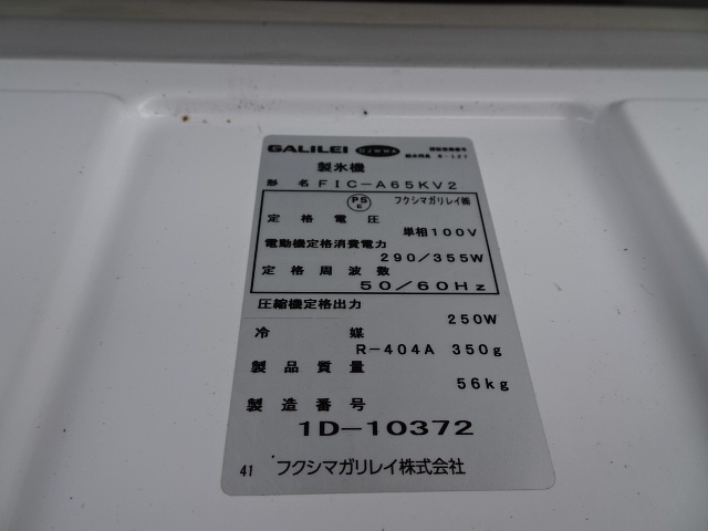 IC1004RJ@2021年★フクシマガリレイ★製氷機65kg★W630★FIC-A65KV2★100V★56kg★厨房専門店