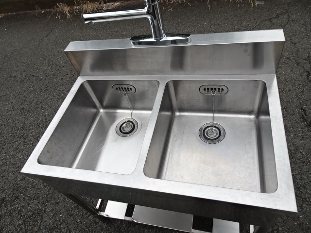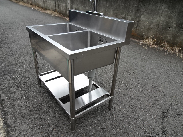 S1004RD@ステンレス2槽シンク★W900xD600xH800★BG150+230(蛇口)★厨房専門店