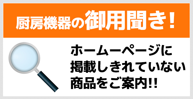 お不便おかけしまして申し訳ございませんが、お探しの厨房機器がございましたらお気軽にお問い合わせください。