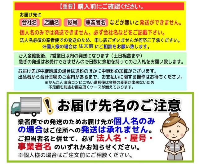 →商品詳細欄に荷降ろし人数のご案内をしております。必ず荷受人のお手配をお願い致します。