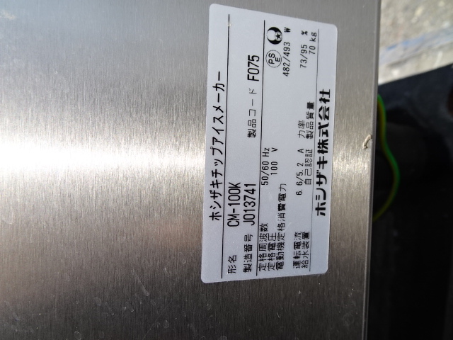 IC0615PA@2019年★ホシザキ★チップアイス製氷機★W600xD600★CM-100K★K9★厨房専門店