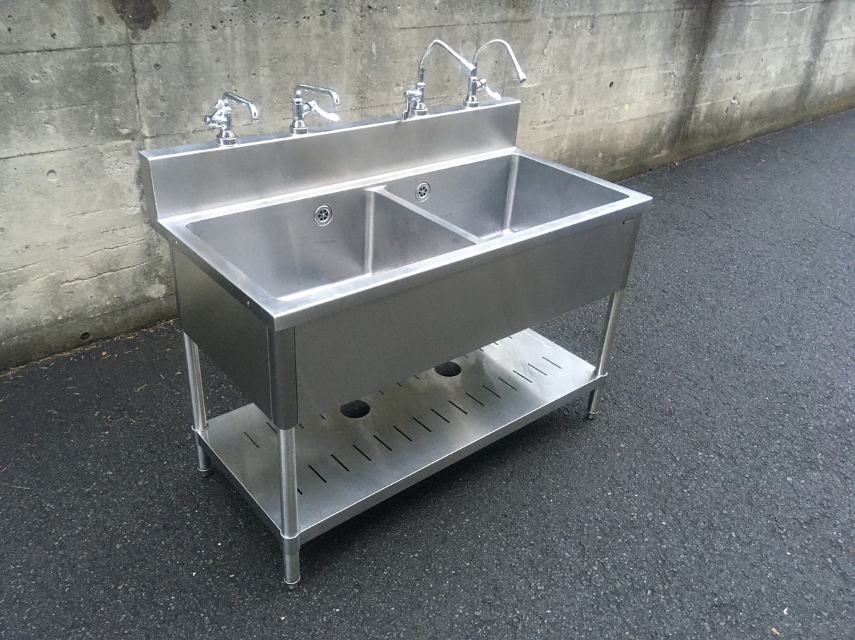 S190831J@ステンレス●2槽シンクw1200 W1200×D600×H800(BG+150)●ACK3