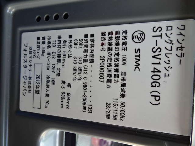 ●商品名:RS0810RL@2012年★ワインセラー★ロングフレッシュ★W605xD590xH930★ST-SV140G(P)★100V★厨房専門店