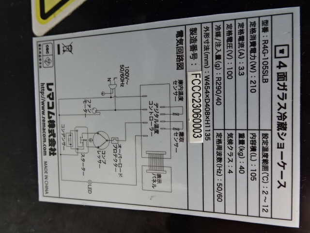 ●商品名:RS0531RU@2023年★コカ・コーラ★レマコム★冷蔵ショーケース★W425xD380xH1135★R4G-105SLB★100V★厨房専門店