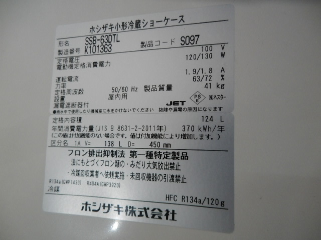RS0116NB@2020年製★ホシザキ★冷蔵ショーケース★SSB-63DTL★W630xD450xH1080★100V★厨房専門店