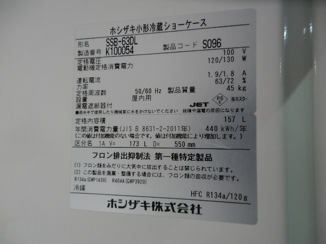 RS0114NA@2020年製★ホシザキ★冷蔵ショーケース★SSB-63DL★W630xD550xH1080★100V★厨房専門店