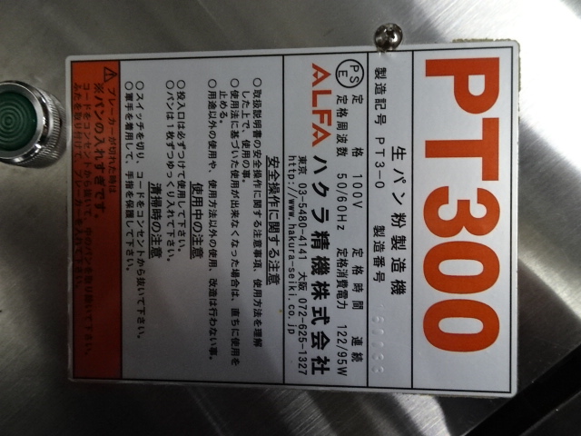 EA1208RJ@2016年製★ハクラ★生パン粉製造機★W420xD280xH520★100V★PT300/PT3-0★厨房専門店